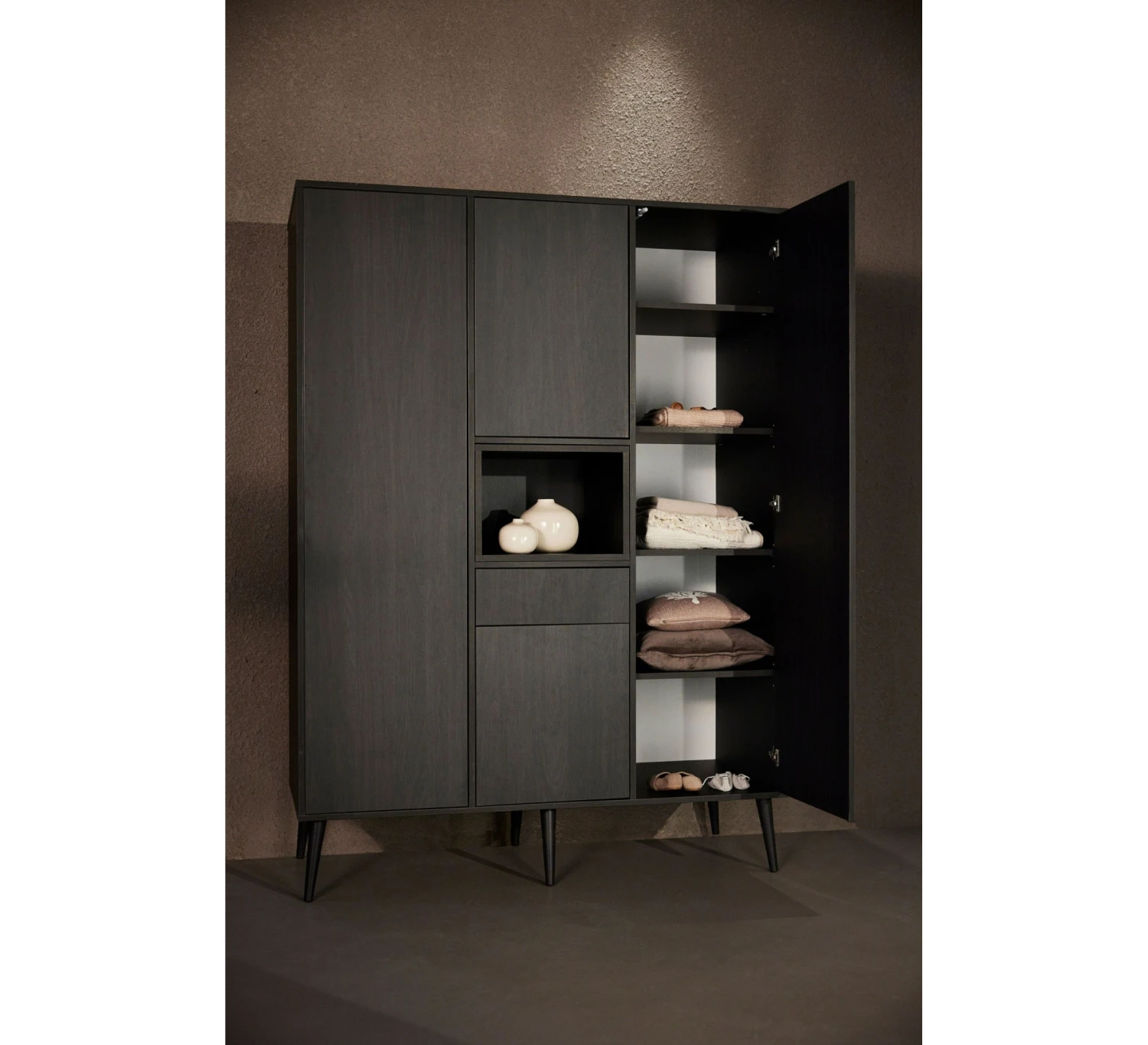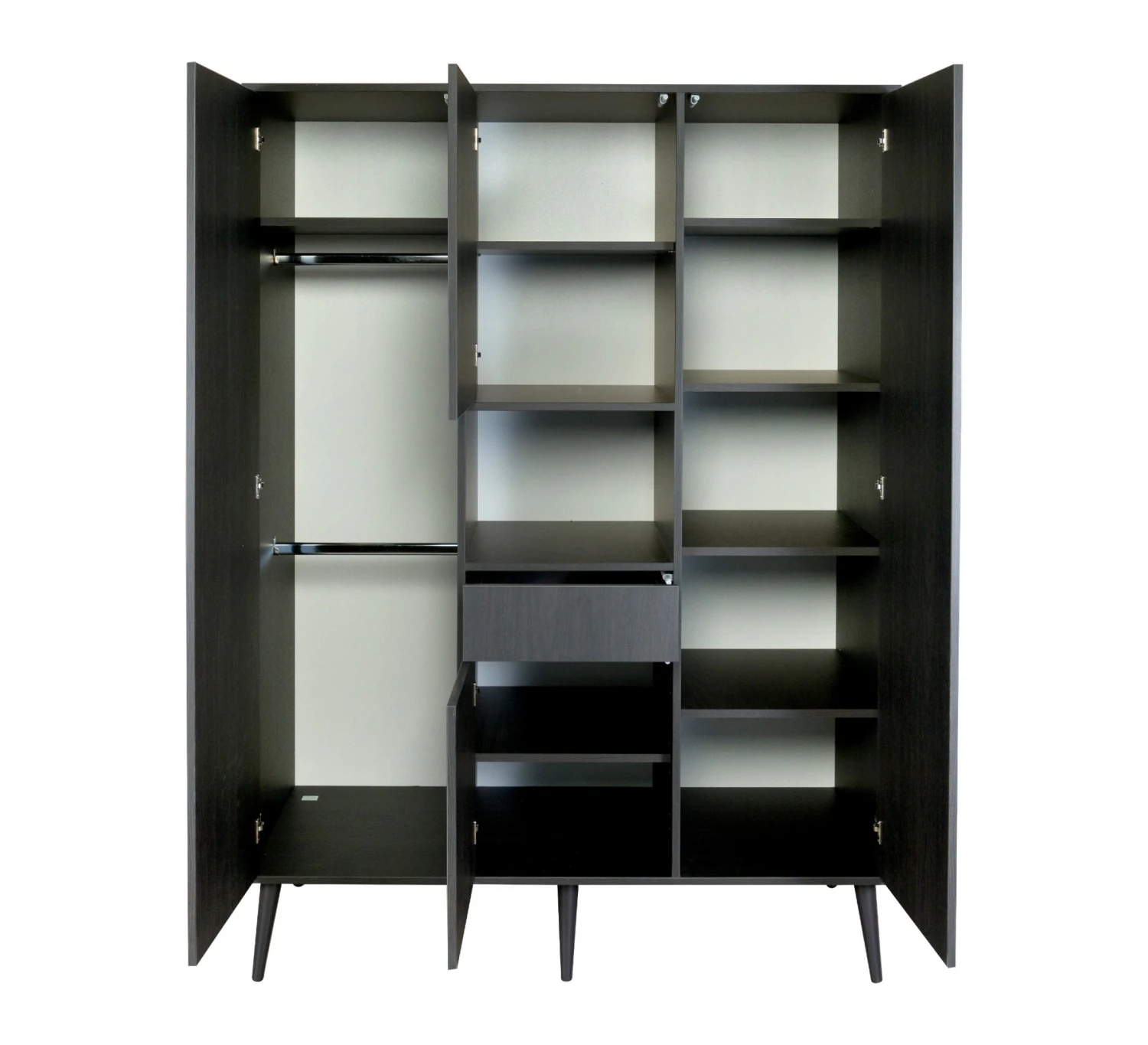 Als je op zoek bent naar veel opbergruimte, dan biedt de mooie Cocoon 3-deurskast van Quax zeker een uitkomst. De kast is voorzien van meerdere legplanken en twee hangroedes, zodat je al je kleding en spullen in de kast kwijt kunt. In het midden van de kast zit nog een nis waar je ook spullen op kunt bergen of ter decoratie neer kunt zetten. Bijpassende nissen zijn los verkrijgbaar.