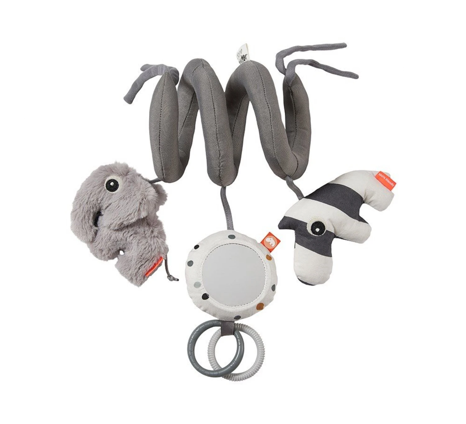Krul deze boxspiraal om de spijlen van je box, zodat je baby zich ermee kan vermaken. De verschillende texturen van de figuurtjes houden het interessant voor je kindje en maken knisperende geluiden. Het kleine spiegeltje is extra leuk voor de nieuwsgierige oogjes en de twee bijtringen eronder helpen bij het verlichten van de last bij doorkomende tandjes.