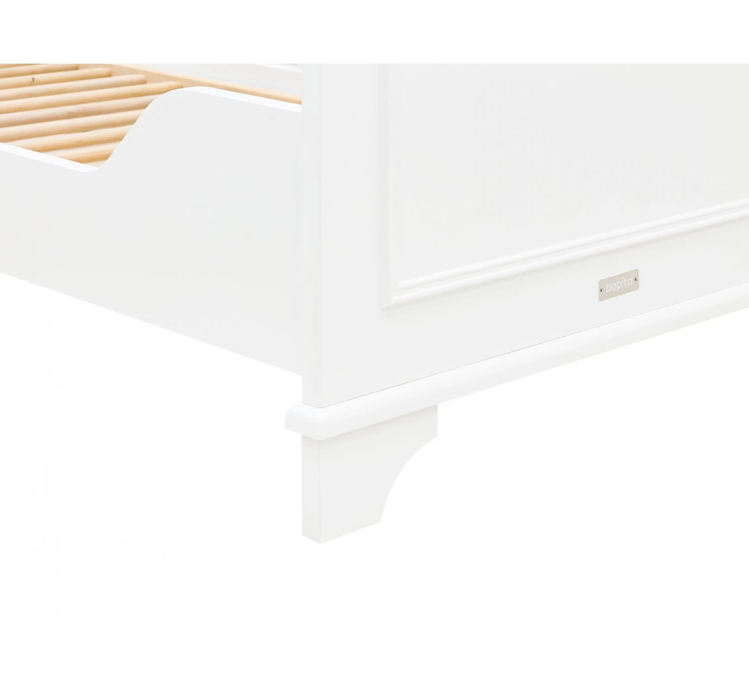 Dit doorgroeibed 70×140 Charlotte van Bopita is duurzaam omdat het met je kindje meegroeit. Je kunt het bedje in eerste instatie gewoon als ledikant gebruiken. Op het moment dat je kindje zich begint op te trekken kun je de verstelbare bedbodem omlaag zetten zodat je kindje veilig in het ledikant ligt. Wanneer je kindje groot genoeg is, dan is het mogelijk om een spijlenrek te vervangen door een lage zijde. Zo kan je kindje goed wennen aan het zelf in- en uitstappen van een bed. Dit bed is niet om te bouwen tot cotbed variant, er blijft altijd één spijlenzijde aanwezig.