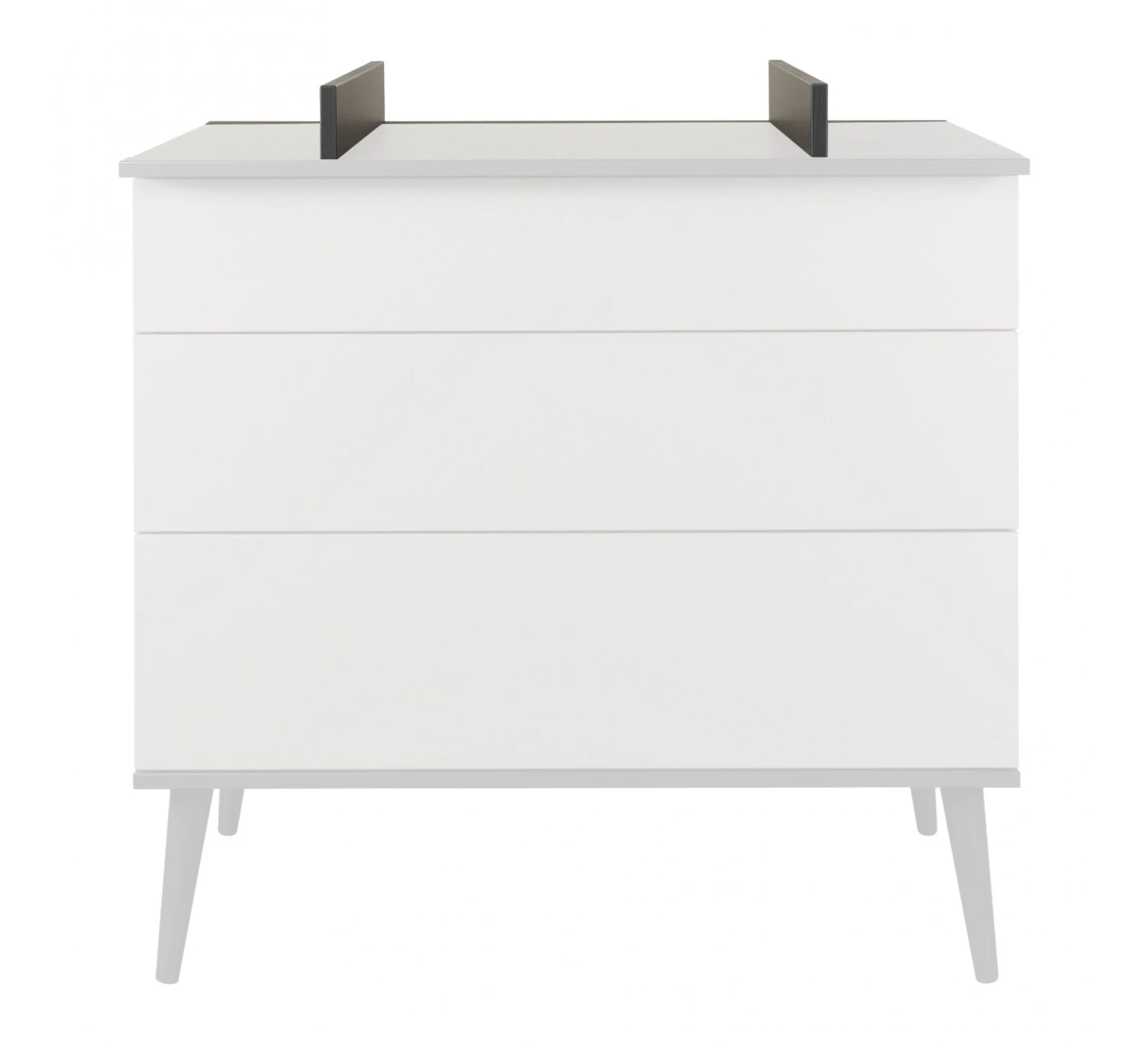 Dankzij deze commode extensie Flow van Quax kun je je kindje veilig en comfortabel verschonen op de commode Flow. Deze extensie is alleen geschikt voor de commode Flow van Quax. De extensie is gemaakt van melamine en beukenhout. De barriers op de extensie zorgen ervoor dat de aankleedkussen niet kan verschuiven tijdens het verschonen.