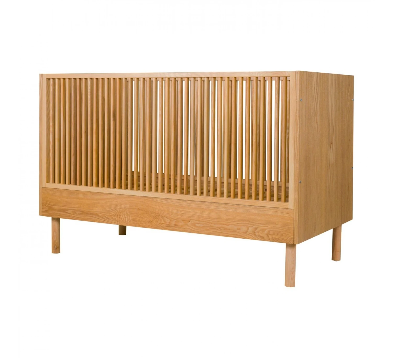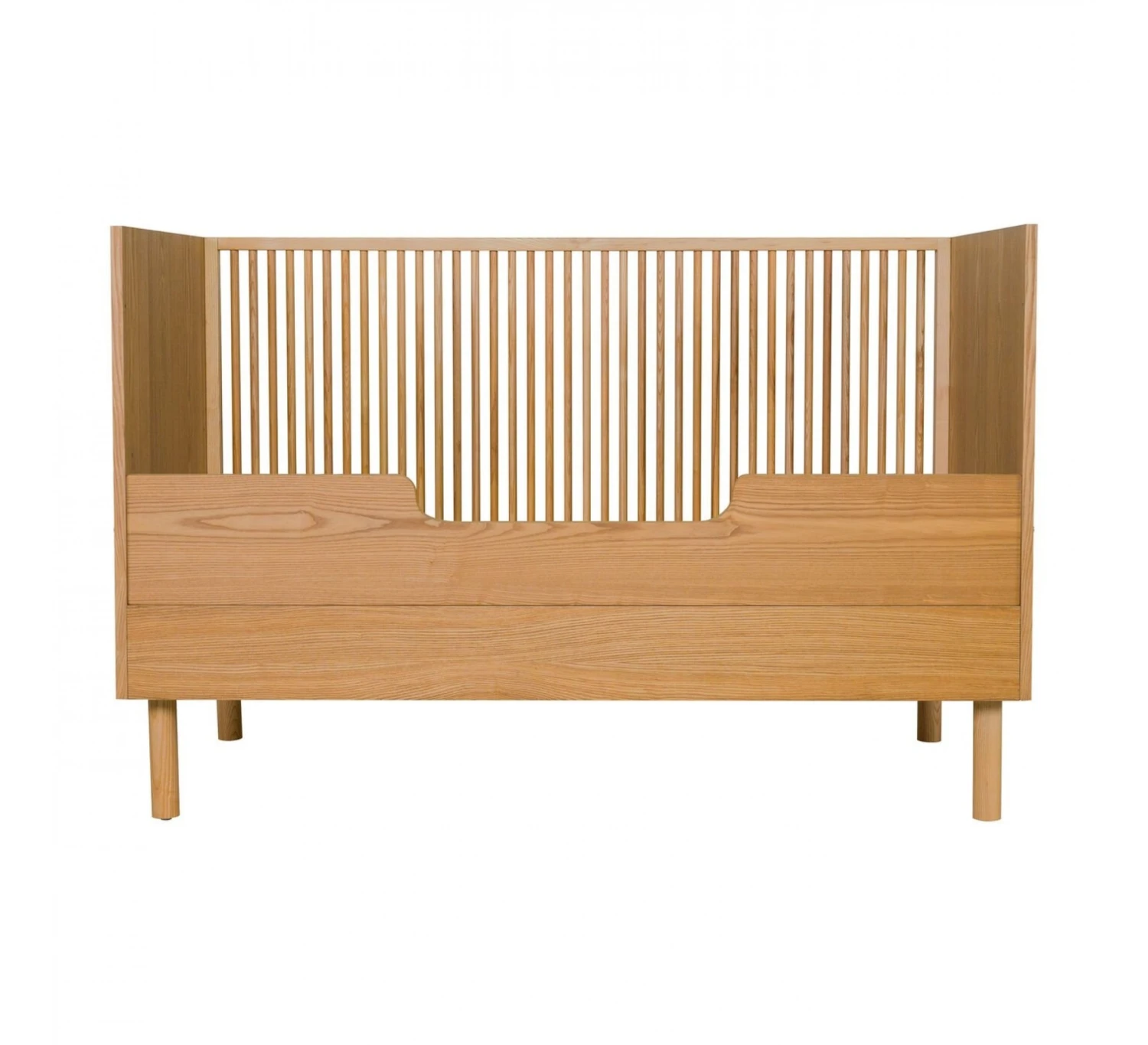 Het Quax Hai No Ki Bed (70×140 cm) is voorzien van een in twee hoogtes verstelbare bodem waardoor het eenvoudig meegroeit met je kleintje. Bovendien is dit bed omvormbaar tot een open kleuterbedje. De Hai No Ki-collectie is Japans geïnspireerd voor de liefhebbers van design, minimalistische eenvoud en de warmte van hout. Het Quax-bed is gemaakt van MDF-gefineerd essenhout en biedt ruimte voor een matras van 70×140 cm (niet inbegrepen).